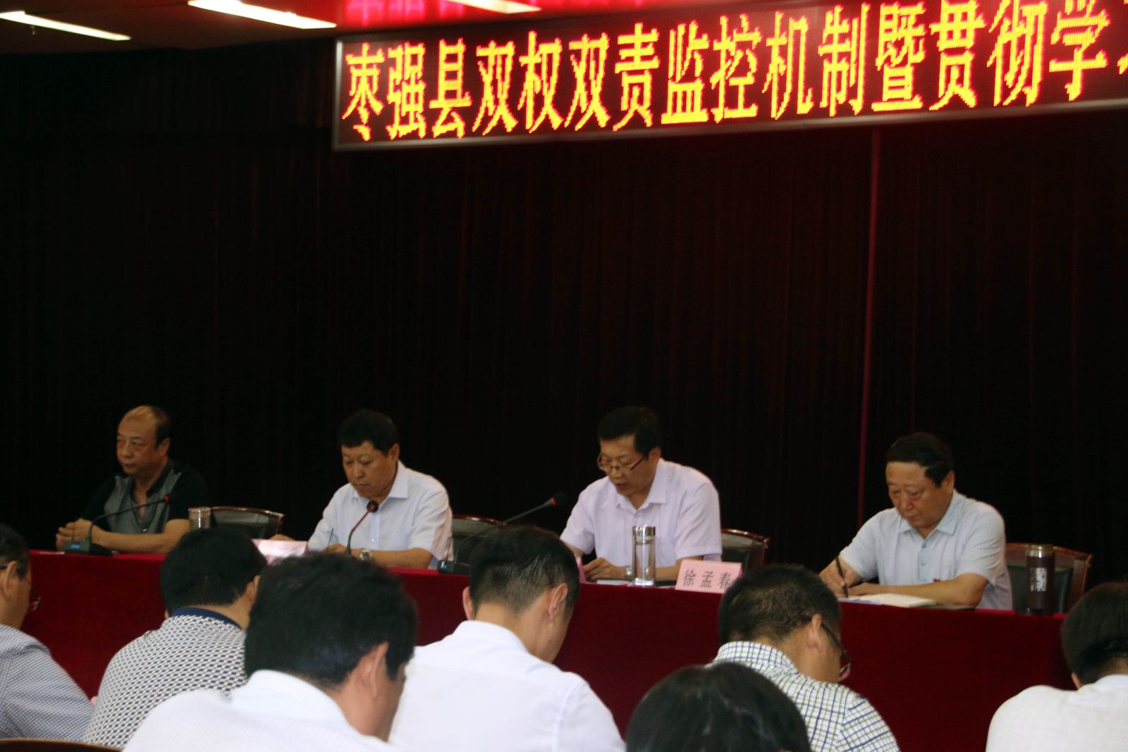 会议指出,开展“双权双责”监控机制建设,是市委对反腐倡廉建设作出的战略性部署,是落实党风廉政建设“两个责任”的有效举措和“一问责八清理”专项行动治理成果的巩固提升。通过“双权双责”机制建设,做到事事有规矩,事事受监督,事事要公开,以此达到预防腐败、促进廉洁、改进作风、提高效能的目的,为经济社会发展营造良好政治生态。会议强调,枣强县作为全市的试点,先行一步,要发扬试点先进引导作用,各部门“一把...
